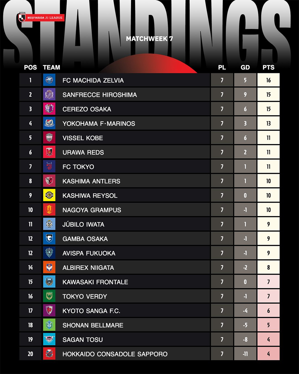 Sur ces trois journées, un seul club enregistre trois défaites : le Shonan Bellmare. Après un bon début de saison, les difficultés défensives ont vite rattrapé le modeste club. Et ces dernières ont emmené avec elles une lutte pour le maintien habituelle et perpétuelle. Depuis sa remontée dans l’élite, le Shonan Bellmare doit chaque année se battre pour survivre. Déjà six longues années où se sont enchaînés les maintiens miracles. Le problème est toujours le même : un effectif trop faible, surtout sur les postes défensifs, dû aux difficultés économiques que traverse le club. Cependant, pour nuancer, deux de ces trois défaites ont eu lieu contre des clubs du top 3.