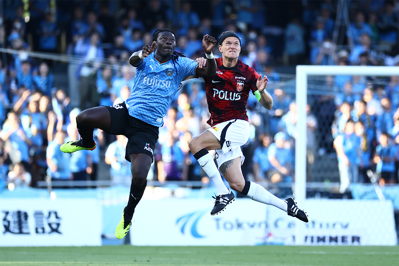 Mais encore une fois, les Reds étaient incapables d’enchaîner, et allaient prendre une leçon de réalisme par Kawasaki, qui est pourtant depuis des mois un des clubs les moins en réussite face au but. En témoigne la série de quatre matchs sans marquer de la sixième à la neuvième journée. Toru Oniki était en plus toujours privé de Kota Takai, sélectionné avec le Japon U23. Asahi Sasaki, latéral de métier, évoluait donc dans l’axe avec Takuma Ominami. Le décevant Erison, lui, était remplacé en pointe de l’attaque par Bafétimbi Gomis, titularisé pour la première fois de la saison. Pour affronter le club de Kanagawa, Per-Mathias Høgmo ne modifiait presque pas son onze par rapport à celui ayant triomphé de Nagoya. Le seul changement étant la titularisation de Tomoaki Okubo au poste d’ailier droit, palliant l’absence de Naoki Maeda. Dès le début, on pouvait constater que le match allait être passionnant. Après moins de trois minutes, le gardien de Kawasaki Naoto Kamifukumoto, titulaire depuis deux matchs en l’absence de Jung Sung-ryong, devait sortir une grosse parade devant Ryoma Watanabe. Frontale allait lui répondre quelques minutes plus tard. Après une bonne protection de balle, le français Bafé Gomis a servi Akihiro Ienaga, qui centrait ensuite pour Daiya Tono. La tête du milieu a été contrée par Alexander Scholz, puis a atterri dans les pieds de Yasuto Wakizaka. L’ancien international japonais ouvrait le score, d’une frappe à bout portant face à Shusaku Nishikawa. Kawasaki aurait rapidement pu doubler la mise, mais une frappe de Ienaga après un festival de Macinho a été repoussée sur la ligne par Ryoma Watanabe. Après ce temps fort frontaliste, Urawa a repris le contrôle. D’abord mis en échec par Naoto Kamifukumoto, Tomoaki Okubo a fini par égaliser, de la tête, sur un superbe centre enroulé de Shoya Nakajima, qui semble renaître depuis quelques matchs. Les Reds passaient ensuite proche du second but. Mais dès le retour des vestiaires, les occasions ratées ont coûté cher. Lancé par Kento Tachibanada, le défenseur Asahi Sasaki a percuté plein axe sans être attaqué, avant de frapper à l’entrée de la surface en pleine lucarne. L’attitude défensive de joueurs comme Alexander Scholz, Hirokazu Ishihara ou Marcus Hoibraaten était incompréhensible. Ces derniers se contentant de reculer sans attaquer le porteur du ballon. Et le cauchemar allait continuer pour les Reds en seconde période. Kawasaki ne voulait pas refaire la même erreur qu’en première, et a donc poursuivi ses attaques. Les espaces laissés ont été très mal gérés par Urawa, dont la plus grosse occasion a été une frappe lointaine un peu molle de Ryoma Watanabe, dont la trajectoire a surpris Naoto Kamifukumoto qui n’a pas réussi à la capter, la déviant sur son poteau. Dans les derniers instants, un ballon a été récupéré haut par le milieu de Kawasaki, qui a trouvé Shin Yamada en profondeur. L’entrant a temporisé, puis servi Akihiro Ienaga au second poteau. Le vétéran marquait le troisième but de son club, et son premier cette saison. Avec une victoire et une défaite sur les deux derniers matchs, Urawa est douzième, derrière de très modestes clubs comme le Jubilo Iwata et l’Avispa Fukuoka. Même s’il faut encore lui laisser sa chance et construire sur le long terme, il est difficile de voir dans quels domaines le club de Saitama a progressé depuis l’arrivée du coach norvégien.
