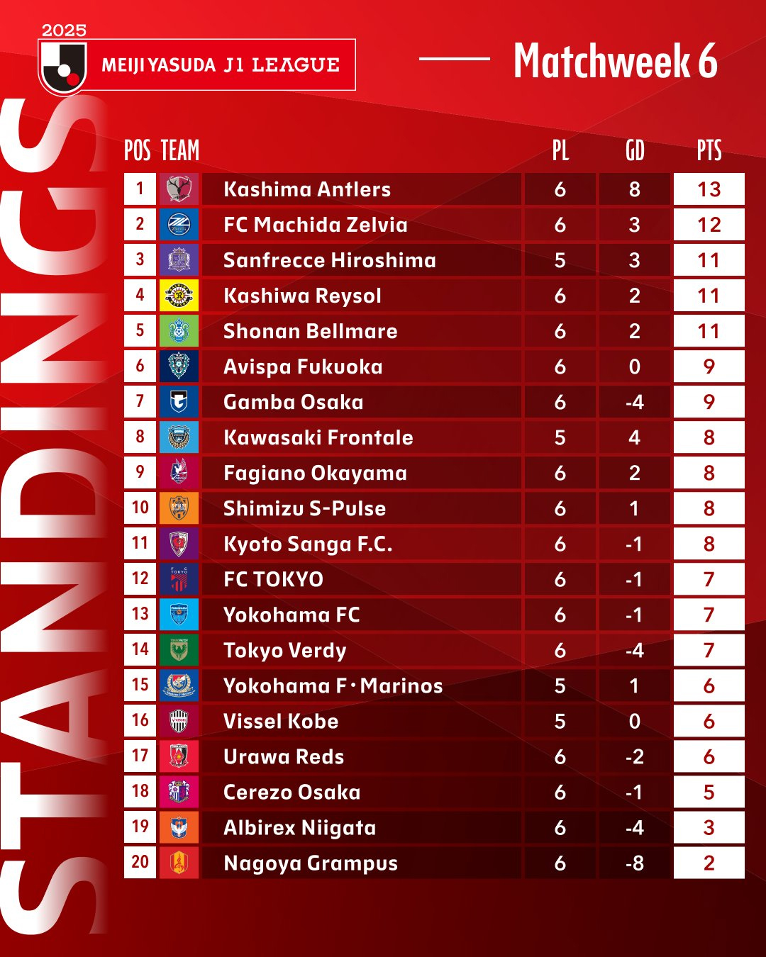 Première victoire pour Kobe et les Marinos, inquiétudes à Hiroshima et désillusion pour Urawa, voici le bilan de la sixième journée de J1 League 2025.