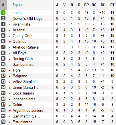 Reste la guerre pour le maintien. Si l’affaire parait entendue pour Unión et San Martín, elle se complique sérieusement pour Independiente. Le Rojo, qui devait aller chercher 35 points dans ce tournoi pour s’assurer tranquillement le maintien, n’en compte que 8 en 8 journées, se retrouve à 12 points de San Lorenzo et ne peut donc plus espérer qu’une chute brutale de Quilmes pour se sauver. Seul souci : les Cerveceros suivent une cadence infernale.