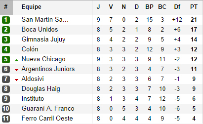 Côté Santo, ce cinquième succès à domicile, le cinquième sans prendre de but, lui permet de conserver ses quatre points d’avance sur Boca Unidos, désormais seul deuxième après sa courte victoire face à Aldosivi. A noter enfin le retour dans le top 5 de Nueva Chicago qui réalise l’un des coups de la semaine en s’imposant à Instituto, signant au passage sa deuxième victoire en trois rencontres.