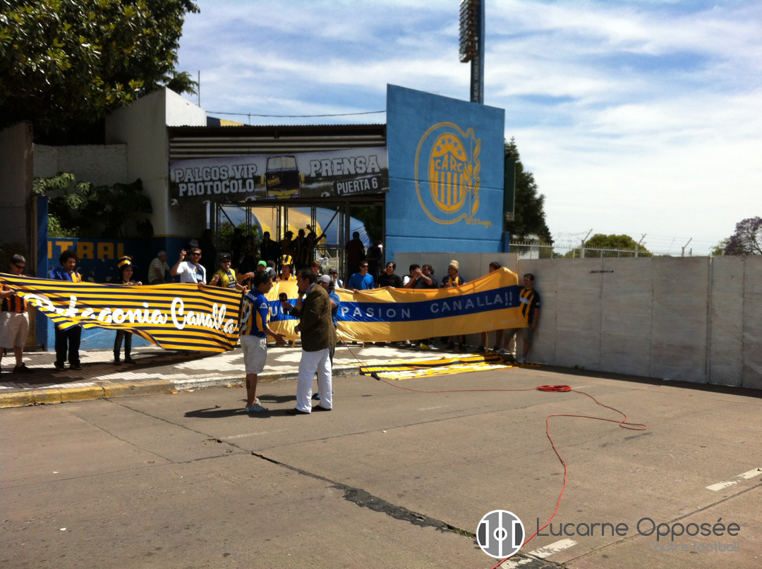 « Ça a été une âpre négociation toute la semaine avec ma femme pour pouvoir emmener mes deux fils au stade aujourd'hui » lâche un fan de Central avant qu'un autre ajoute en s'en amusant « Moi j'ai dû m'engager à payer un resto ce soir, sinon c'était hors de question ». On vous avait annoncé hier un match unique et une rivalité entre les deux voisins qui avait atteint des proportions inimaginables, cela se confirme. Les rues adjacentes à l'Estadio Gigante de Arroyito sont déjà bondées et les fans de Central qui abordent de nombreux t-shirt « Somos Rosario » (Nous sommes Rosario) sirotent quelques bières, du fernet pour les plus gourmands, choripan à la main. Pétards et artifices sont de sortis pour accompagnés les premiers chants tout cela sous les yeux des effectifs de police nombreux pour l'occasion. Sur notre chemin nous rencontrons le groupe de supporters « Patagonia Canalla » et son président Pedro, l'occasion d'échanger et de s'apercevoir, une fois de plus, que ce match est vraiment à part. « On a fait plus de 15 heures de route pour le clásico, certes c'est fatiguant mais il est inconcevable pour nous de ne pas poser notre bâche le jour de ce clásico. Cette rencontre est bien trop importante et représente tellement pour nous... ». Et quand nous demandons à Pedro comment on devient un supporter de Rosario Central en habitant en Patagonie, la réponse est sans équivoque « Central c'est un sentiment qui ne s'explique pas. Et puis c'est quand même le premier club de l’intérieur du pays à avoir été champion d'Argentine en 1971. Ça représente quelque chose de grand pour nous qui vivons en province, en Argentine il y a une grande rivalité entre la Capitale et la Province ».