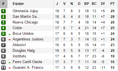 Dans le groupe A, la situation est encore plus indécise, les leaders ne sachant plus gagner. Sur les trois dernières journées, seul Jujuy est parvenu à décrocher un succès parmi les cinq leaders. Ce coup de frein général a permis à Argentinos et Aldosivi de recoller, offrant une course à la montée intense : car à trois matchs de la fin, Aldosivi, qui jouera un match décisif ce jeudi contreDouglas Haig, conclusion de la 19e journée, n’est qu’à deux points de Colón, quatrième. Un succès des Tiburónes les placeraient dans le top 4, reléguant Argentinos à la septième place. Ils seront donc sept à lutter pour l’une des cinq places offrant la promotion, huit si Douglas Haig s’impose demain.