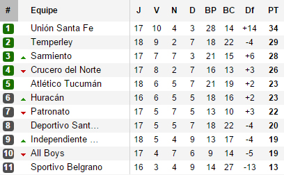 Santa Fe était prêt à célébrer ses Tatengues. Dans leur Estadio 15 de Abril plein comme un œuf, les hommes de Leonardo Madelón, qui restaient sur six victoires consécutives savaient qu’un septième succès serait synonyme de promotion en Primera A. L’adversaire du soir, Temperley, son poursuivant direct, spécialiste de la défaite à l’extérieur (2 succès et un nul en neuf matchs), n’aura pas eu le temps d’espérer empêcher le peuple Tatengue de célébrer. Un but de Claudio Guerra à la fin du premier quart d’heure, un autre signé Lucas Gamba en fin de première période, Unión avait tué le match à la pause. Le 15 de Abril en fusion allait passer 45 minutes à faire la fête, 25 ans après avoir inscrit le but de la montée, Leonardo Madelón ramène Unión en Primera A, les Tatengues devenant les premiers élus des 10 futurs promus.