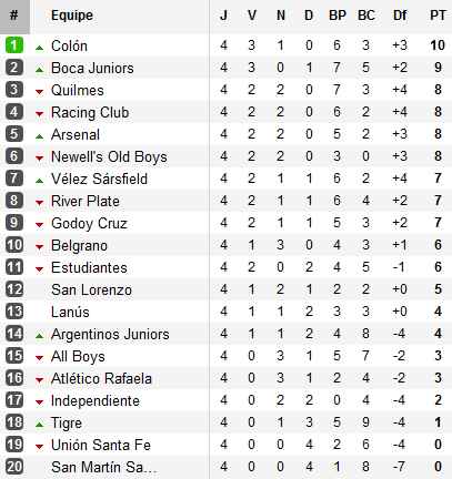Le grand gagnant de la quatrième journée est donc Colón qui s’impose sur le terrain d’Estudiantes sur un pénalty transformé en fin de rencontre par Moreno y Fabianesi (les Pinchas signant au passage leur second revers à domicile en autant de rencontres). Le Sabalero prend donc les commandes du Torneo Inicial.