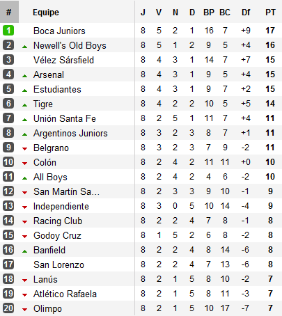 Mais derrière, tout se resserre. Newell’s enchaîne un quatrième succès consécutif en dominant le décevant Racing de Coco Basile et reste un point derrière pendant que Vélez et Arsenal dominent respectivement San Lorenzo et All Boys pour se rapprocher à deux points. L’occasion manquée est pour Tigre, qui tombe chez lui devant Argentinos et n’en profite pas pour prendre la roue de Boca. Reste qu’après huit journées, ils sont six en trois points.