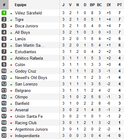 Dans les autres rencontres, notons les premiers succès pour Belgrano et Colón (et son nouveau coach Roberto Sensini) alors que San Martin réalise l’un des exploits de la journée en s’imposant à Lanús, ancien leader. Les Verdinegros, désormais à un point de la tête, joueront Estudiantes encore invaincu lors de la quatrième journée ce week-end pour l’un des chocs de la semaine.