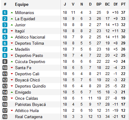 Place désormais aux cuadrangulares, les huit premiers étant répartis en deux groupes de quatre. Dans le groupe A, Tolima retrouvera Pasto, Junior et la meilleure équipe de la première phase Millonarios alors que le groupe B verra l’Atlético Nacional opposé à Itagüí, La Equidad et Medellín.