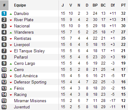 85e minute, Pablo Lima envoyait un missile sur coup-franc et permettait à Danubio, qui avait grandement souffert en première période, de prendre l’avantage après un second acte dominé. 86e minute, Fernando Machado était expulsé à Montevideo, le Nacional allait finir en supériorité numérique. 87e minute, Sebastian Taborda ramenait River Plate au score face au Defensor. Restaient alors 3 minutes, trois minutes au cours desquelles Nacional et surtout River Plate perdront leurs illusions. Jamais Bolsos et Darseneros ne parviendront à marquer. Danubio résistait aux assauts des Naranjas et, à la surprise générale, coiffait tout le monde au poteau pour remporter l’Apertura. Le premier depuis 7 ans, époque de Gustavo Matosas (sacré avec León au Mexique), de Walter Gargano et autres Edinson Cavani !
