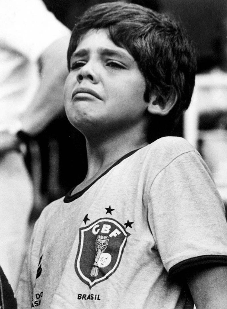 Dans des proportions et un contexte différents du Maracanaço, la tragédie de Sarrià est un drame au Brésil. L’épidémie de grippe en 1982 est ainsi nommée « Paolo Rossi » et la défaite contre l’Italie est comparée à un enterrement. Pour Jornal do Brasil, le poète Carlos Drummond de Andrade écrit : « Quand l’arbitre a sifflé la fin du match perdu, j’ai vu des gens pleurer dans la rue, j’ai vu des hommes et des femmes frapper le sol avec haine les papiers vert et jaune qui étaient encore jusqu’à peu sacrés, j’ai vu des alcooliques inconsolables qui ne savaient plus pourquoi ils trouvaient du réconfort dans la bouteille, j’ai vu des jeunes hommes et femmes fêter la défaite pour ne pas cesser de fêter quelque chose, car leur cœur était programmé pour la joie. […] J’ai vu la tristesse des agents publics de nettoyage et des concierges d’immeubles retirer les débris de l’espoir, j’ai vu tant de choses, j’ai ressenti tant de choses dans les âmes. Et j’en viens à la conclusion que la défaite, pour laquelle nous ne sommes jamais préparés, de tant refuser de l’admettre au préalable, est au final un instrument du renouvellement de la vie. […] La Coupe du Monde 1982 est terminée pour nous, mais le monde n’est pas fini. Ni le Brésil avec ses douleurs et ses richesses ». Le photographe Reginaldo Manente capture pour Jornal da Tarde l’essence de la défaite en photographiant un enfant, maillot de la Seleção sur le dos, en train de retenir ses larmes.