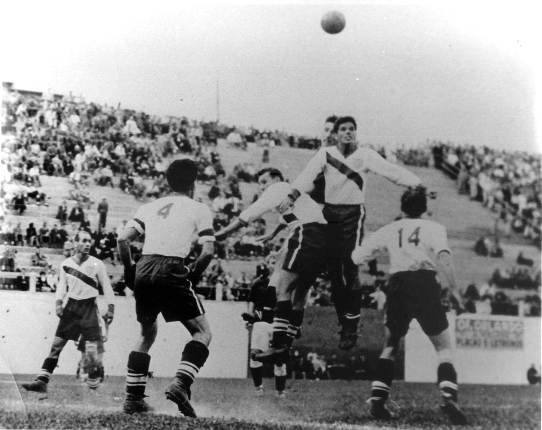 C’est donc tout naturellement et s’appuyant alors sur une American Soccer League devenue puissante et très compétitive, que la sélection se rend à Montevideo pour disputer la première Coupe du Monde. Les rumeurs courent alors quant au fait que la sélection américaine compte dans ses rangs six joueurs britanniques – la réalité est que quatre d’entre eux sont arrivés aux États-Unis lorsqu’ils étaient adolescents, un seul ayant évolué dans un club professionnel disputant deux matchs de troisième division sept ans auparavant. En terres uruguayennes, les USA, composés d’un mélange de joueurs principalement issus de l’American Soccer League, de New York Nationals, St. Louis Ben Millers, Providence Gold Bugs, Fall River Marksmen, New Bedford Whalers et New York Giants, surprennent. La même équipe dispute les trois matchs : elle écrase la Belgique en ouverture (3-0), en fait de même face au Paraguay lors de la deuxième journée, Bert Patenaude signant le premier triplé de l’histoire d’une Coupe du Monde, et se retrouve en demi-finales face à l’Argentine. Jimmy Douglas, le portier américain, se tord la cheville d’entrée de partie, Raphael Tracey se blesse peu avant l’ouverture du score de Luis Monti. À dix contre onze durant le second acte et avec un gardien sur une jambe, les USA encaissent cinq buts supplémentaires. En 1986, la FIFA adjuge à cette sélection la troisième place de l’épreuve, pour un but.